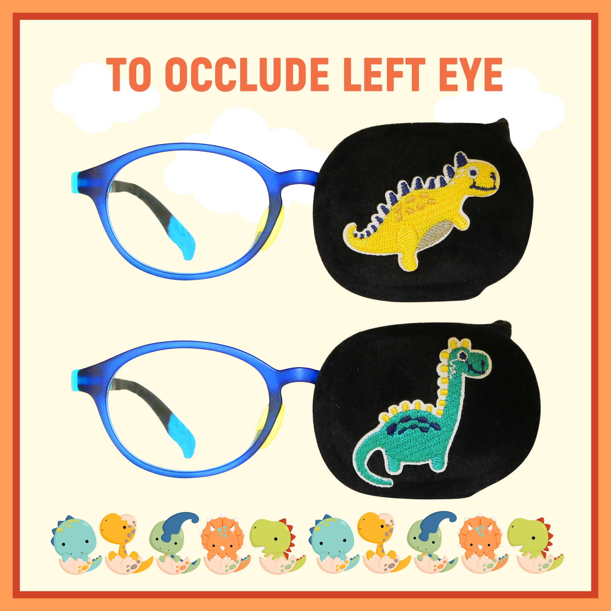 2Pcs Eye Patches for Kids Glasses (Dinosaur - Lemon Yellow & Jungle Green, Left Eye)