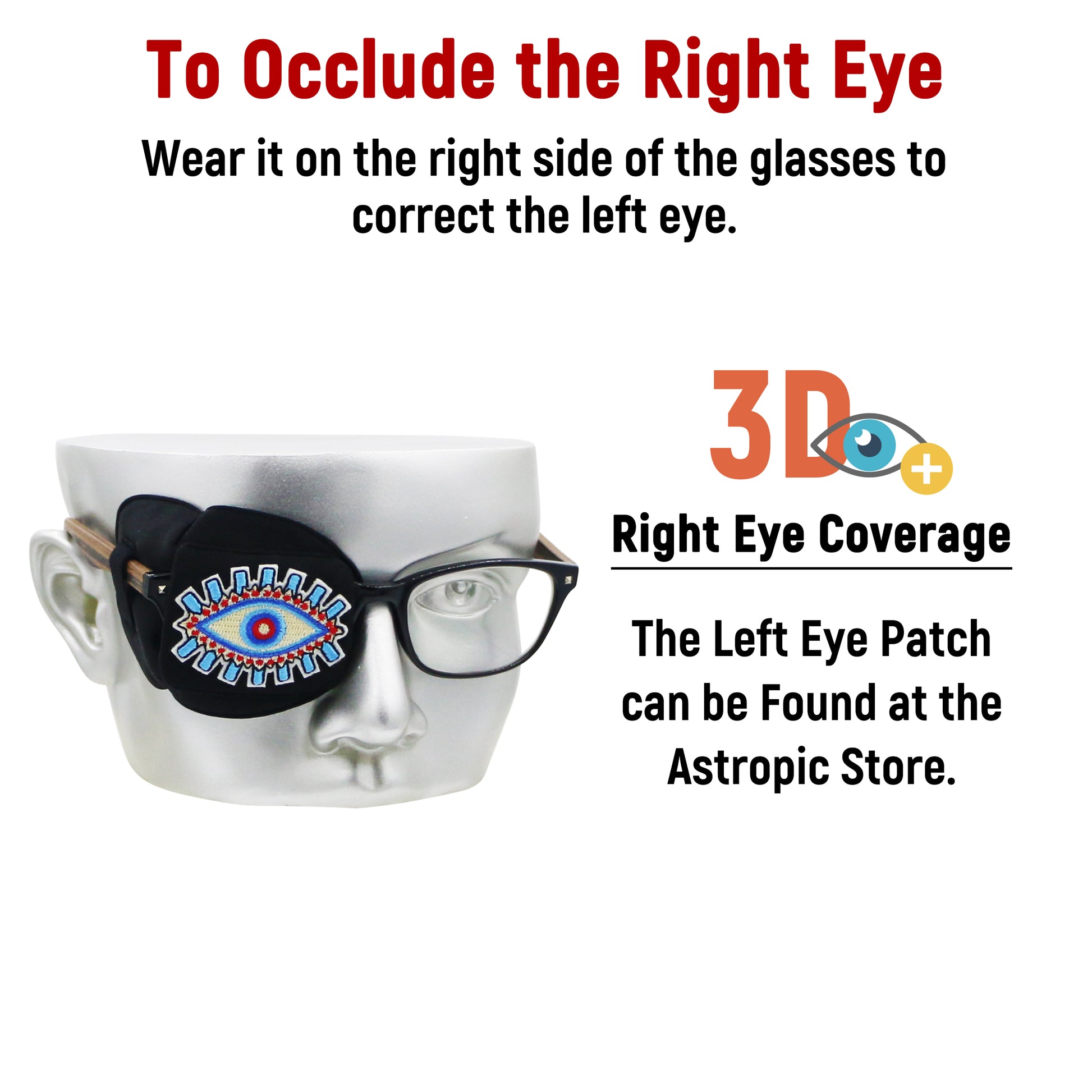 For those in need of left eye coverage, please consider our dedicated 3D Eye Patch (Left Eye Coverage).
