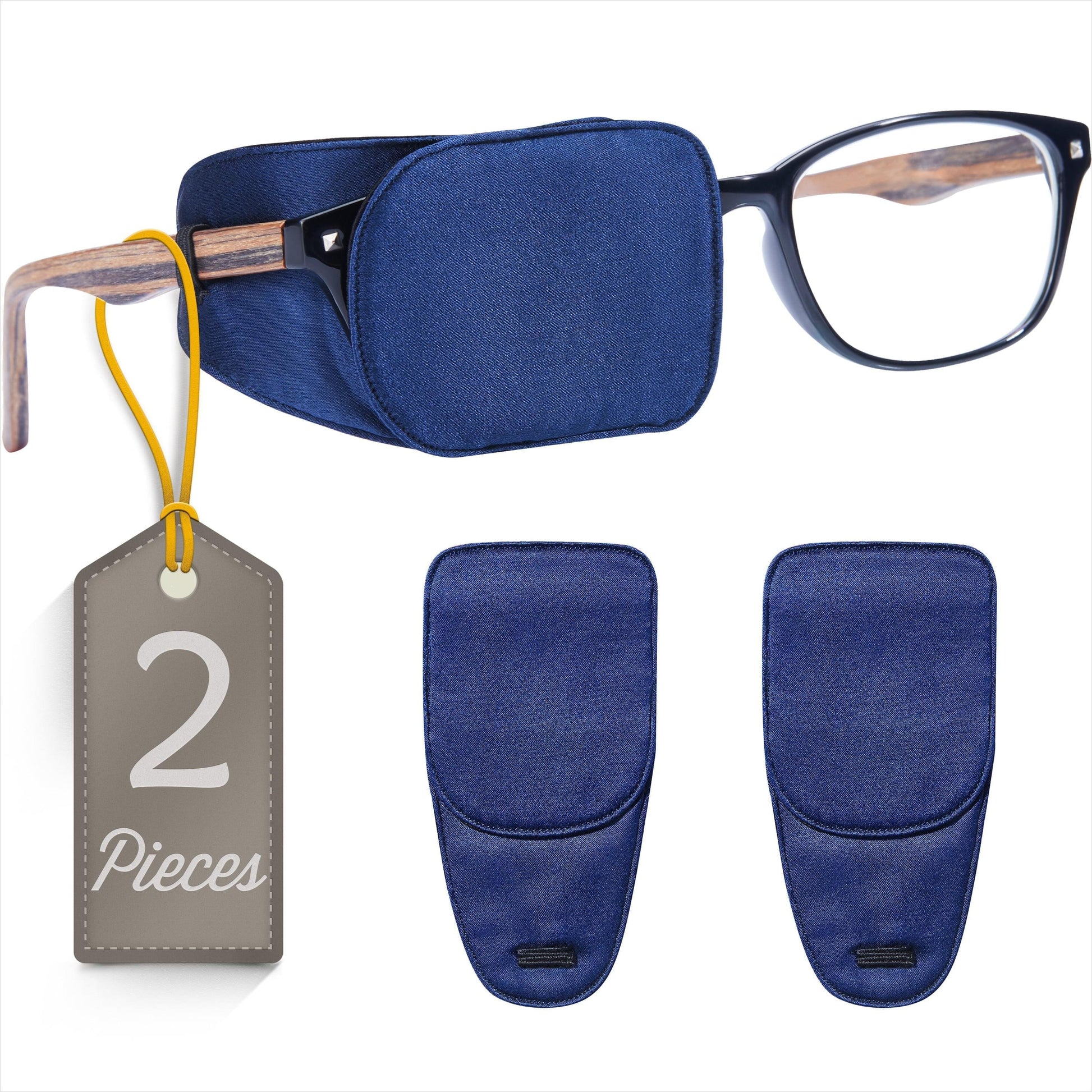 Astropic 2Pcs Silk Eye Patches for Glasses (Medium, Navy Blue)