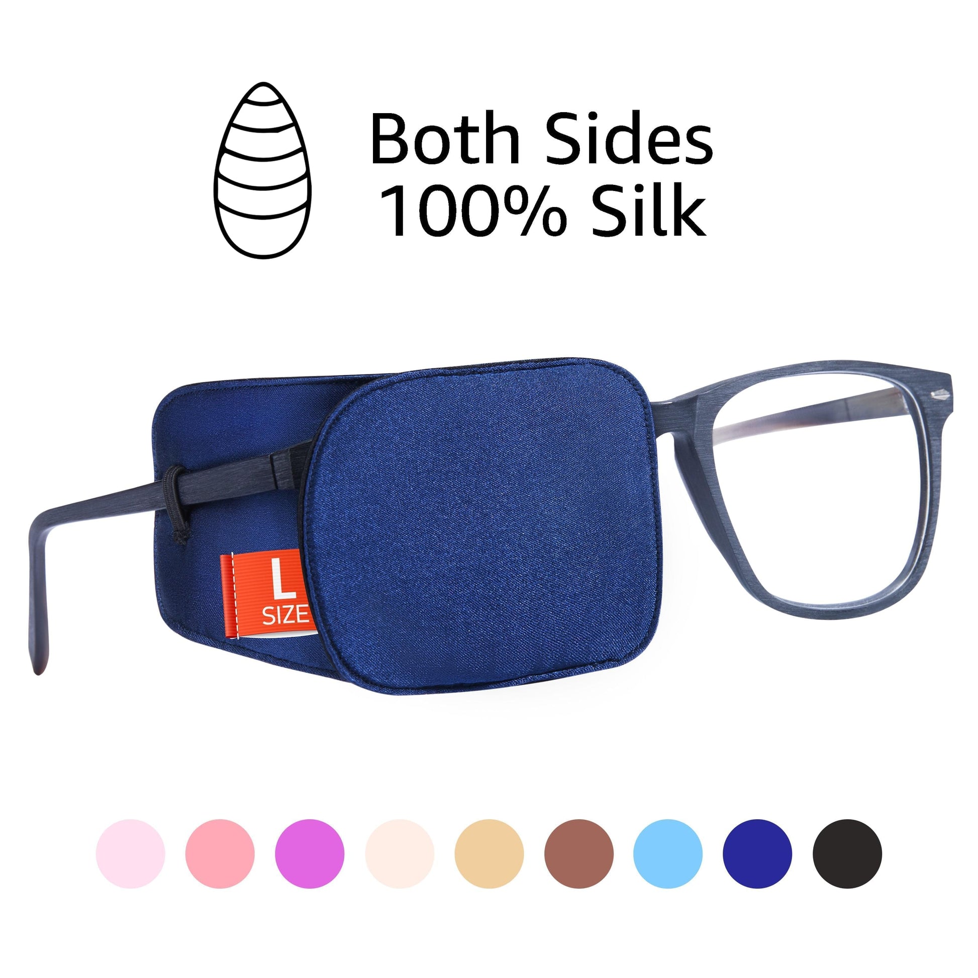 Silk Eye Patch for Glasses (Large, Navy Blue)